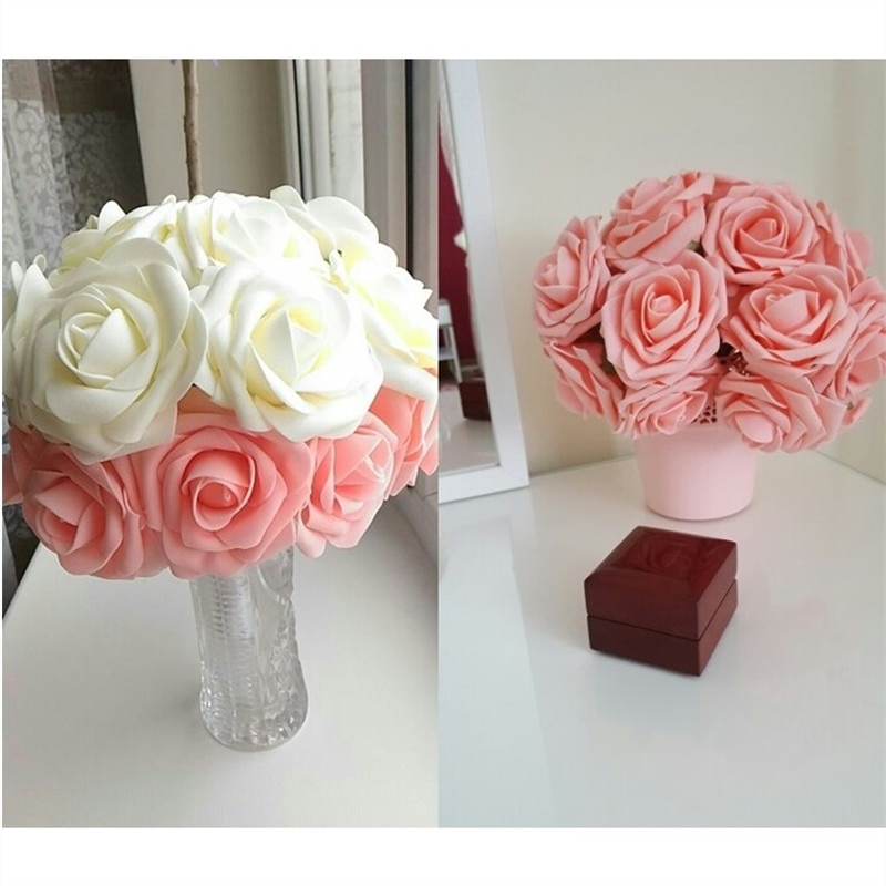 10 Heads 8CM Pretty Charming Artificial Flowers PE Foam Rose Flowers Bride Bouquet Home Wedding Decor Scrapbooking DIY Supplies