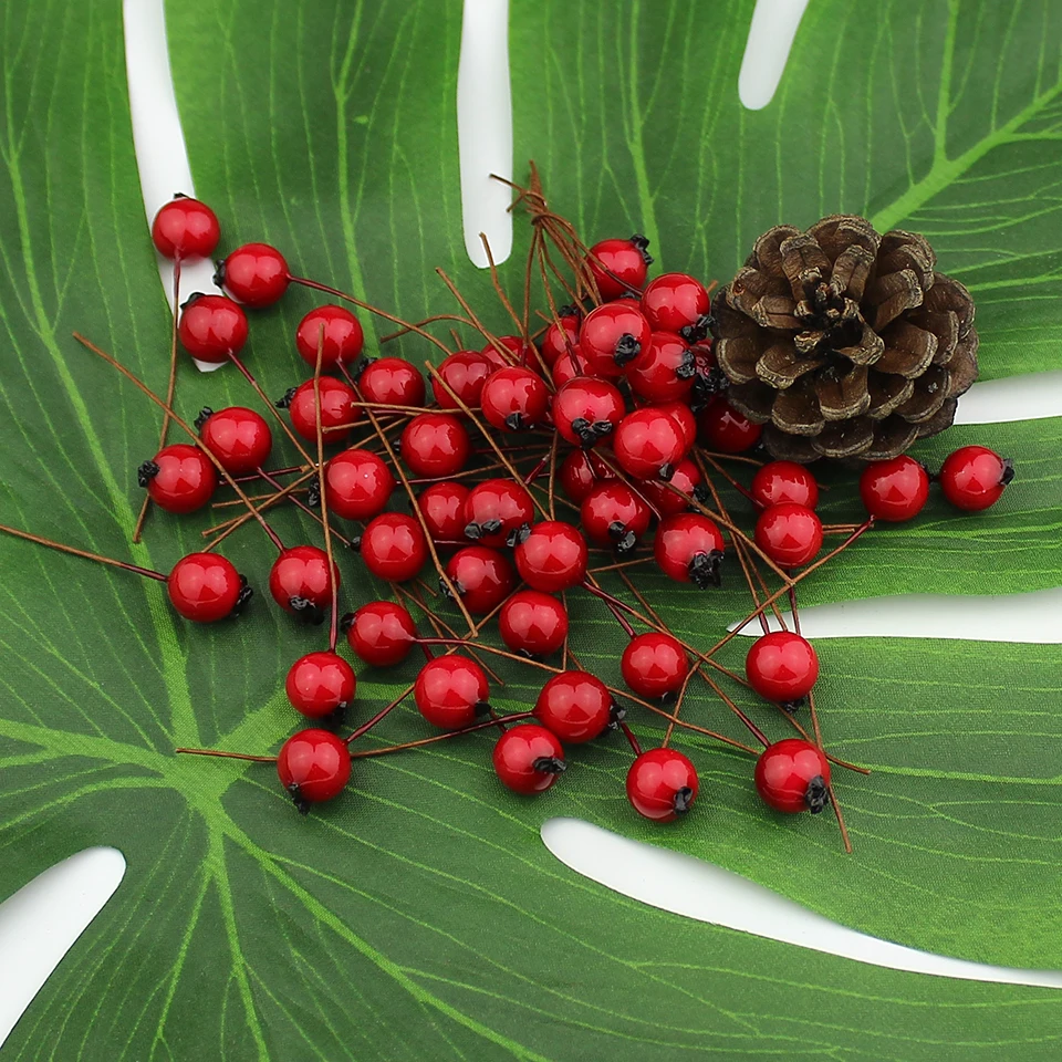 1cm 50pcs Red Artificial Flowers berries cherry Stamens Fake Smooth Foam Fruit for Wedding Christmas Decoration