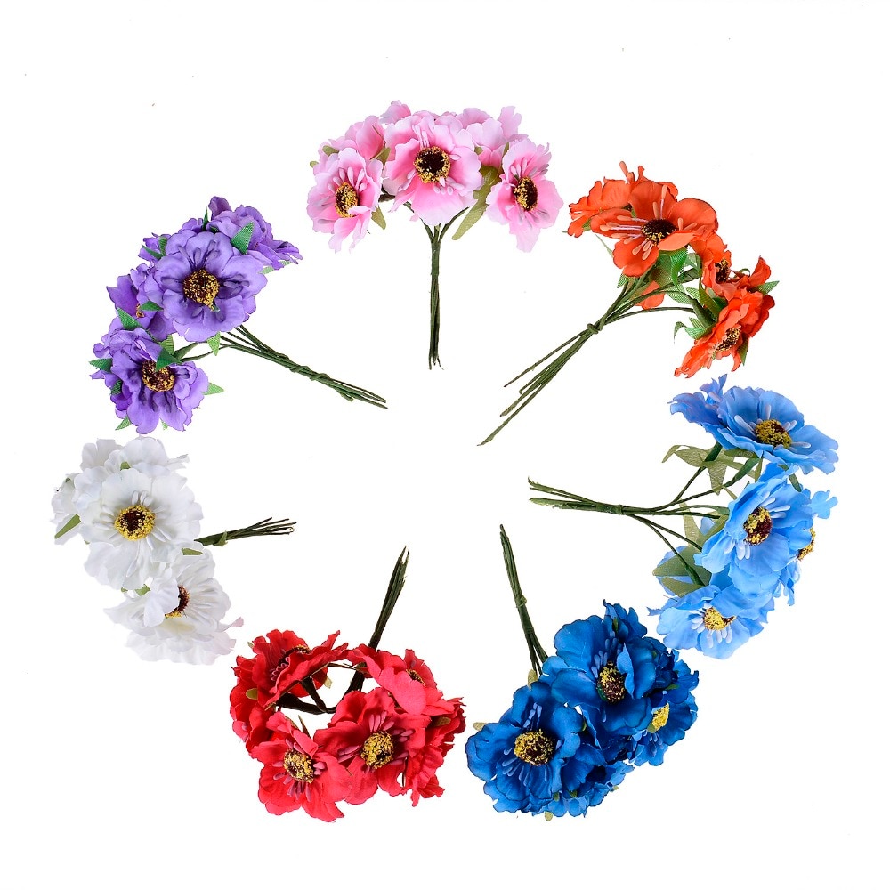 6pcs 3.5cm mini silk cherry artificial poppy bouquet DIY handmade tattoo wreath scrapbook wedding decoration craft fake flower
