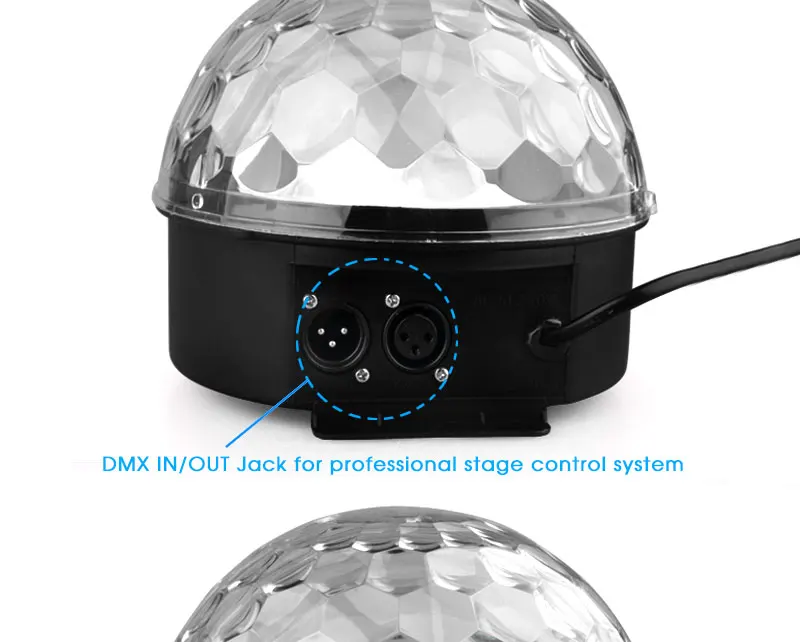 - Support DMX Control, can be connect with Professional stage,and use the DMX 512 Channels to control this ball lamp.