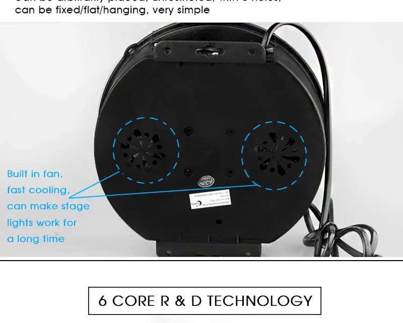 - Control rotation speed, colors and strobe through automatic control or voice control.