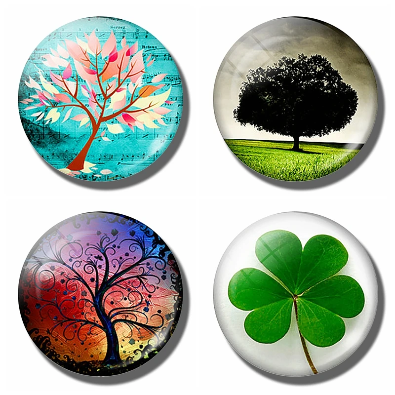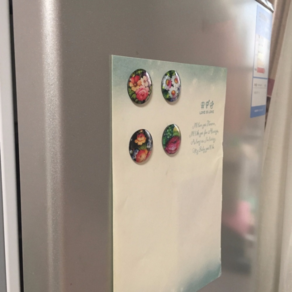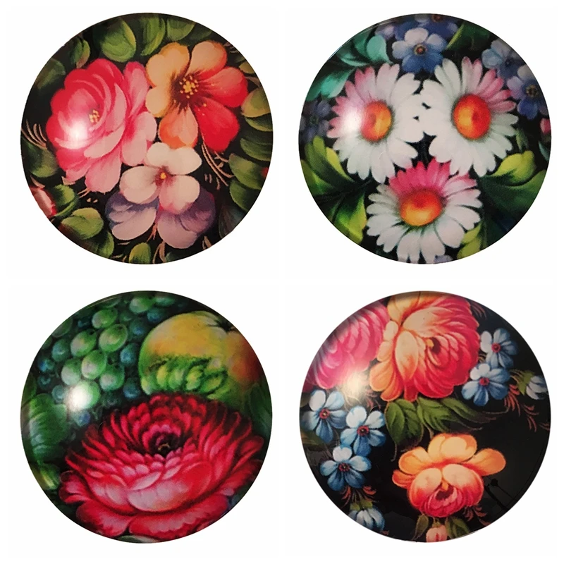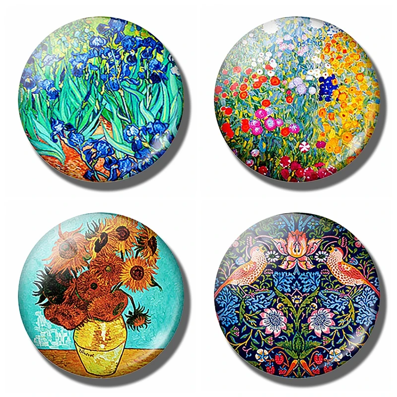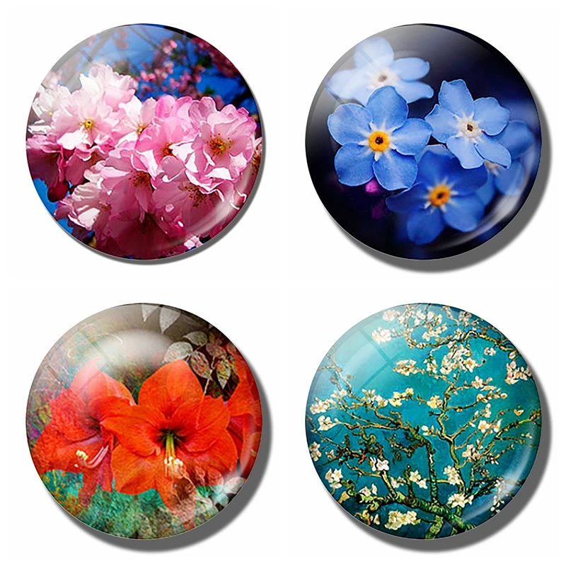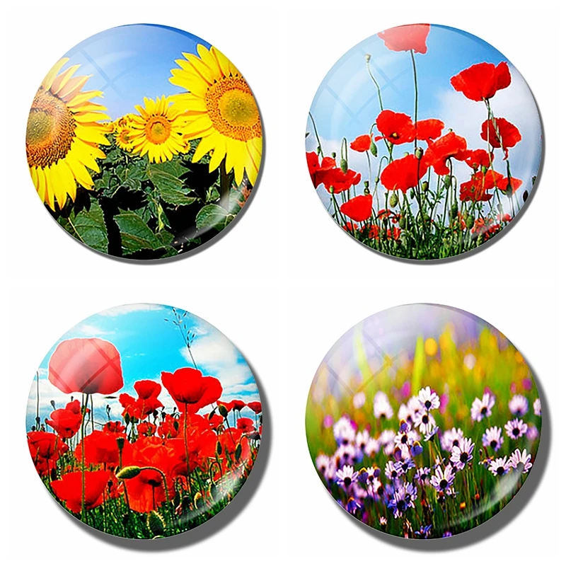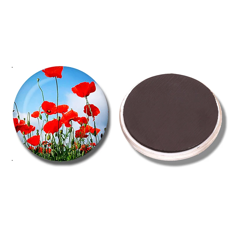 Art Painting Glass Round Retro Flower Pattern Print Refrigerator Sticker Fridge Magnet Life Tree Poppy Flower Message Holder