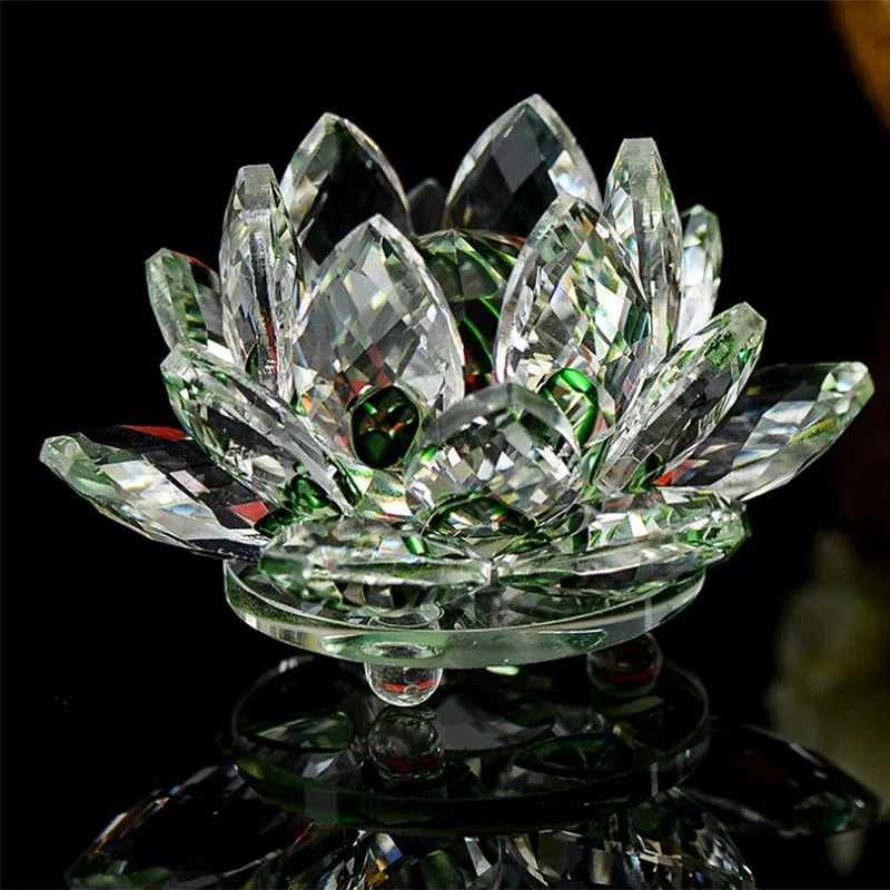 80mm Quartz Crystal Lotus Flower Crafts Glass Paperweight Fengshui Ornaments Figurines Home Wedding